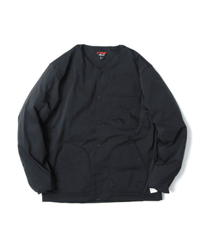 胸ポケットが1つ、腰ポケットが2つのシンプルなデザインで、インナーとして着用する場合は、どんなアウターとも合わせやすくなっています。さらに、ノーカラーにする事で、襟があるとアウターの襟と干渉し合う事もありません。